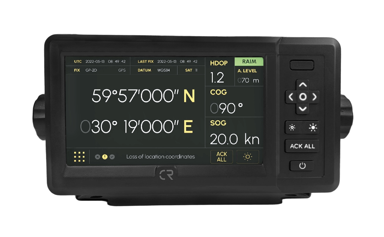 Морской GNSS-приемник NGR-3000 GNSS это спутниковое электронное устройство, которое отображает навигационную информацию и позволяет хранить до 999 путевых точек и 30 маршрутов. Приемник имеет семидюймовый цветной жидкокристаллический сенсорный дисплей с регулировкой яркости и контрастности, два вывода данных GPS, выделенный порт для подключения INS, а также возможность подключения внешнего маяка DGPS для добавления в систему DGPS-функционала.