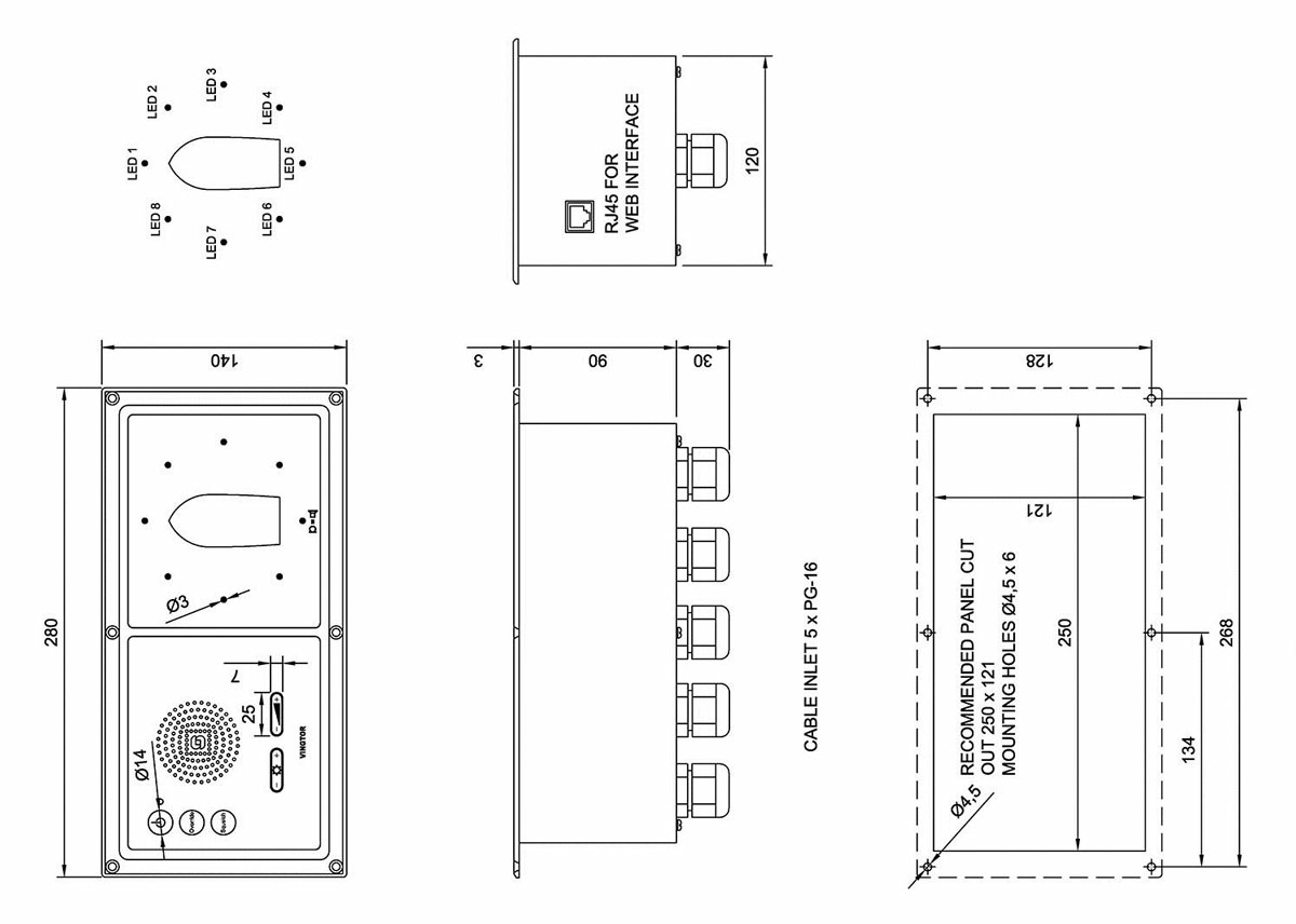 Zenitel VSS-MP - главная панель системы приема внешних звуковых сигналов VSS-V2. Она оснащена 8 светодиодами для индикации сектора, из которого был принят звуковой сигнал, диммером и регулируемой подсветкой, Веб-интерфейсом для управления системой, выходом на регистратор данных рейса. Возможность подключения до 4 второстепенных панелей (VSS-SP), дистанционное отключение, когда тифон или системы ГГС активны. Реализована функция реверса светодиодной индикации.