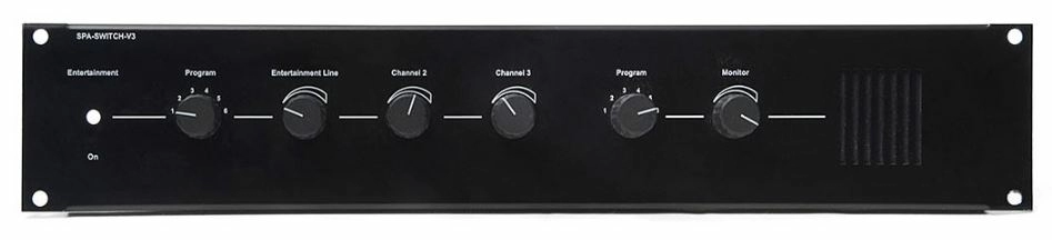 Панель SPA-SWITCH-V3 - предназначена для регулятора громкости 6 подключенных зон. Все 6 линий находятся под непрерывным наблюдением. Для всех зон предусмотрены выходы, для подключения развлекательных программ. Питание подается от сети постоянного тока 24 В. Все входные / выходные клеммы расположены в задней стороне устройства. Монтаж производится в 19 дюймовую стойку.