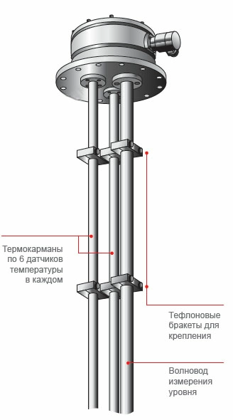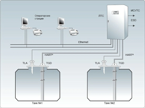 Измерение уровня, температуры и давления осуществляется одним палубным датчиком – TGD (Tank Gauging Device) |